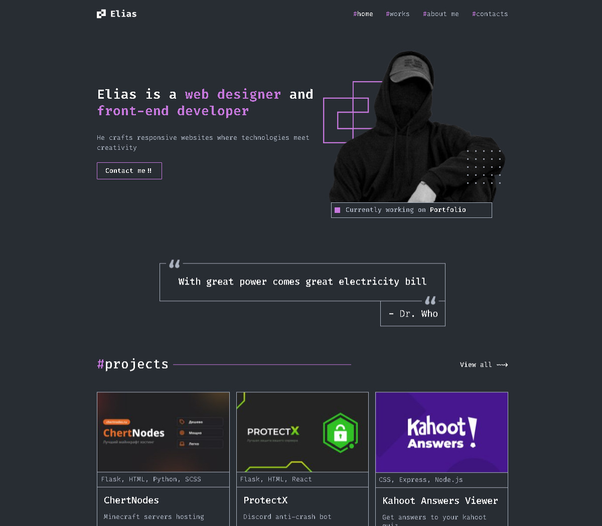 On the portfolio page, you’ll find projects developed using Elementor based on designs crafted in Figma.